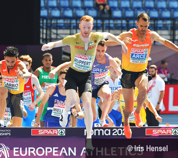 Mit gemächlichem Tempo starteten die Athleten im ersten Vorlauf über 3.000 Meter Hindernis. Kein Wunder, schließlich entscheidet mittlerweile ausschließlich die Platzierung über den Einzug in die nächste Runde, die Zeiten spielen im neuen Format keinerlei Rolle mehr. Die Zielrichtung war für Velten Schneider (VfL Sindelfingen) also klar: Eine Top Acht-Platzierung musste her. Und die sollte es am Ende souverän werden.
