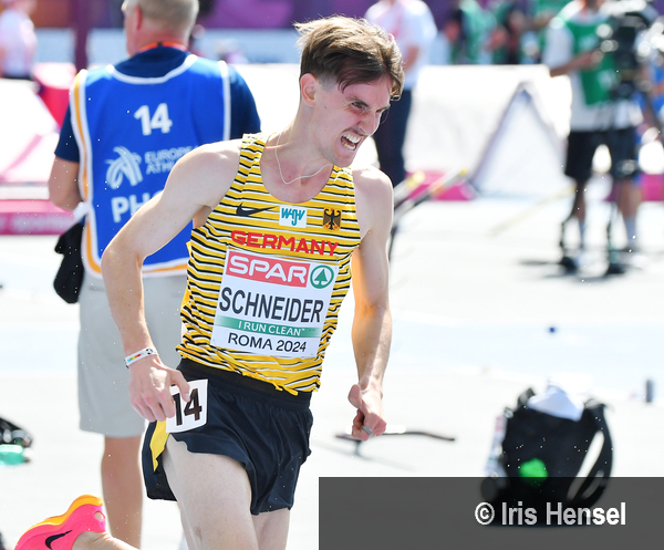 Nach rund einem Kilometer erhöhte der Österreicher Tobias Rattinger die Schlagzahl und zog das Feld auseinander. Velten Schneider hielt sich zunächst im hinteren Teil des Feldes auf, arbeitete sich im weiteren Verlauf aber in das vordere Drittel vor. Auch in der letzten Runde ließ sich der Deutsche nicht von seinen Konkurrenten abschütteln. Velten Schneider erreichte mit seinem Zielspurt gar den zweiten Rang in 8:34,00 Minuten hinter dem Franzosen Djilali Bedrani (8:33,63 min) und legte damit einen überzeugenden Auftritt bei seinem EM-Debüt hin.