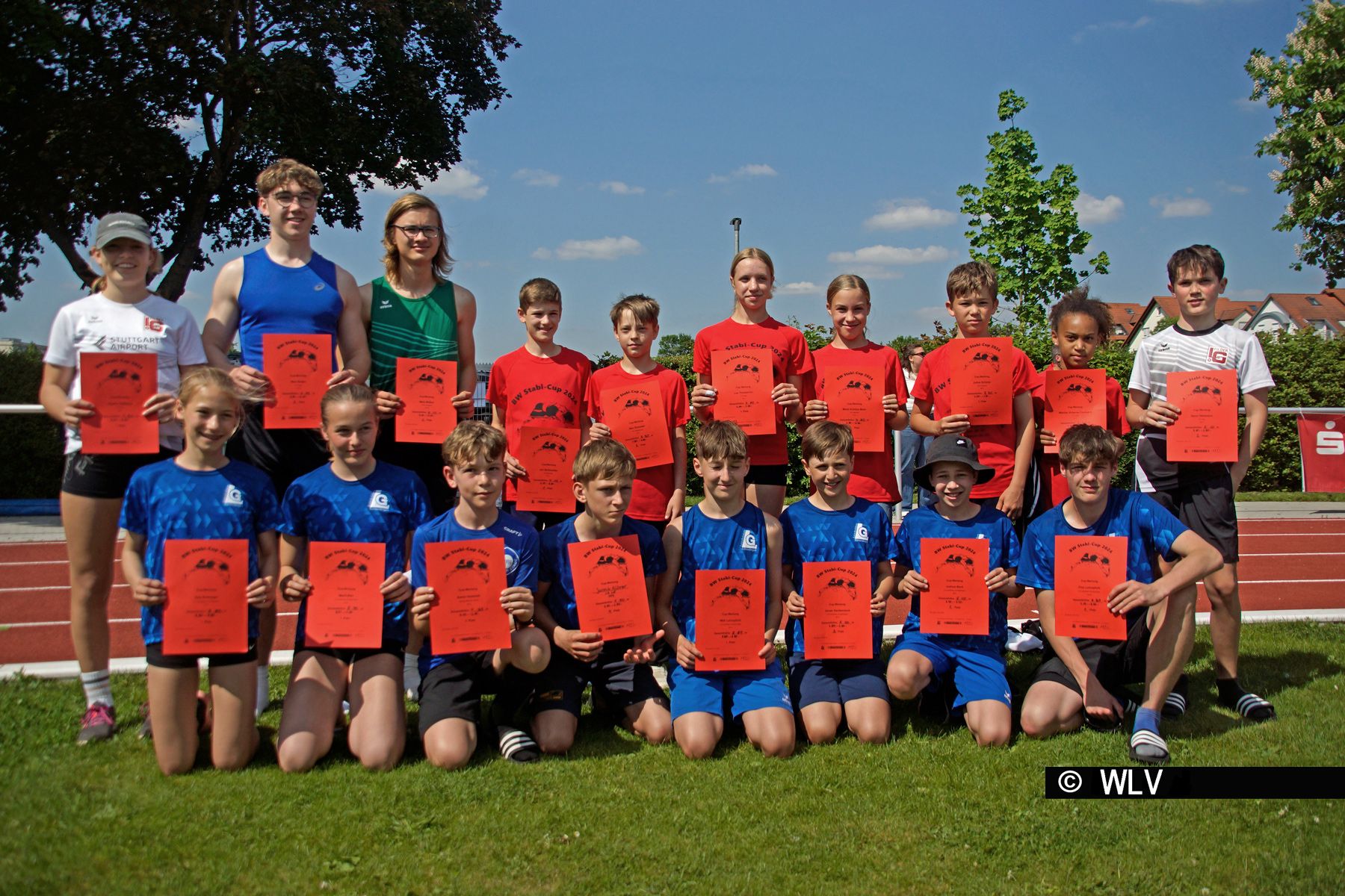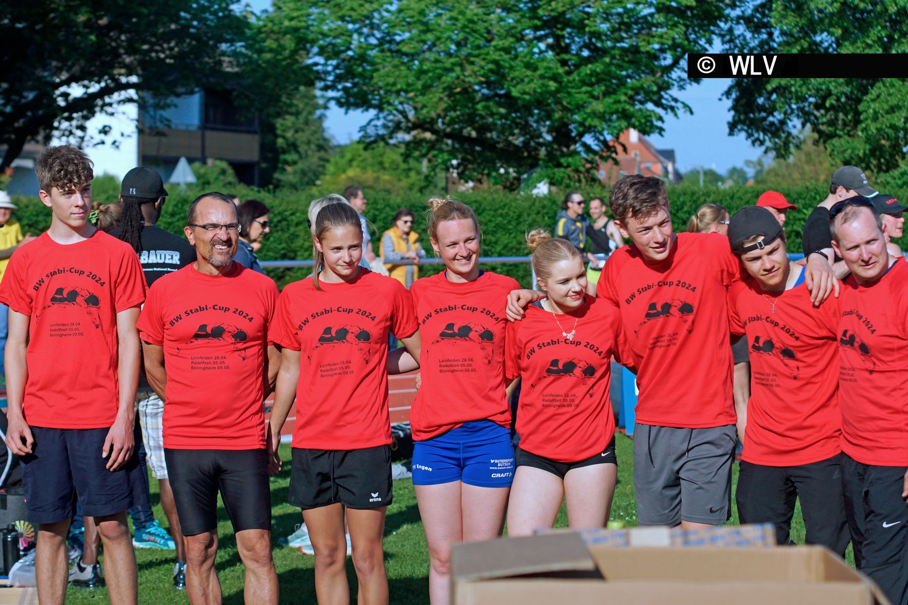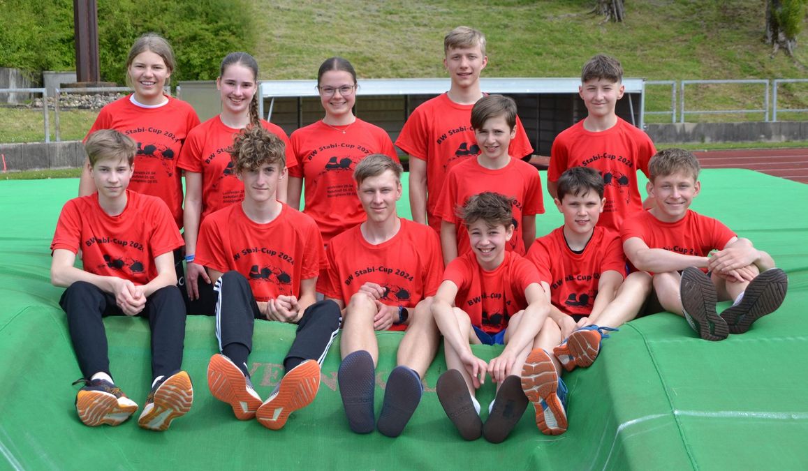 Der Wettergott muss wohl Stabhochspringer sein, denn das Glück mit dem Wetter bei allen Wettkämpfen konnte kein Zufall sein. Die Stützpunkttrainer Anjuli Knächse (LG Leinfelden-Echterdingen) und Winfried Herzig (TV Engen), dieses Jahr in der Organisation zusammen mit Roland Hepperle von der LG Neckar-Enz, hatten wieder viele Nachwuchsspringer auf diesen Nachwuchscup vorbereitet. Spannend für die Jüngsten war der Einstieg in den ersten Wettkampf mit dem Stab und die Trainer hatten alle Hände voll zu tun. Beim dritten Springen konnte man aber schon sehen, wie sich die Athleten verbessern und entwickeln. Mit insgesamt ca. 150 Meldungen insgesamt hat der BW Stabi-Cup eine große Resonanz gefunden. Mit dabei auch Landestrainer Stephan Munz, der mit Rat und Tat zur Seite stand und die Leistungen der Athleten bei den Siegerehrungen lobte und Urkunden und Preise verteilte. Das Veranstaltungs-T-Shirt, das es für alle Athleten und Kampfrichter gab, soll nun als Werbeträger für Stabhochsprung dienen. Als besonderen Preis neben den Preisen für die Podestplätze gab es wieder ein speziell bedrucktes Hoodie, das wie auf dem T-Shirt den im Moment erfolgreichsten Baden-Württembergischen Stabhochspringer, nämlich Ben Bichsel zeigt, der kürzlich seine Bestleistung auf 5,20m geschraubt hat.