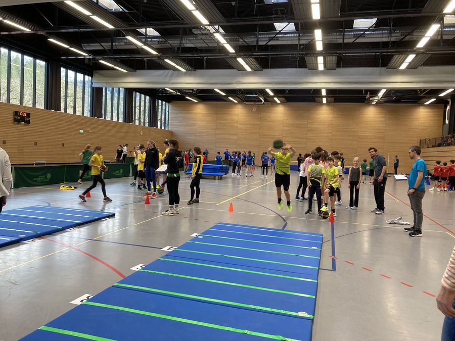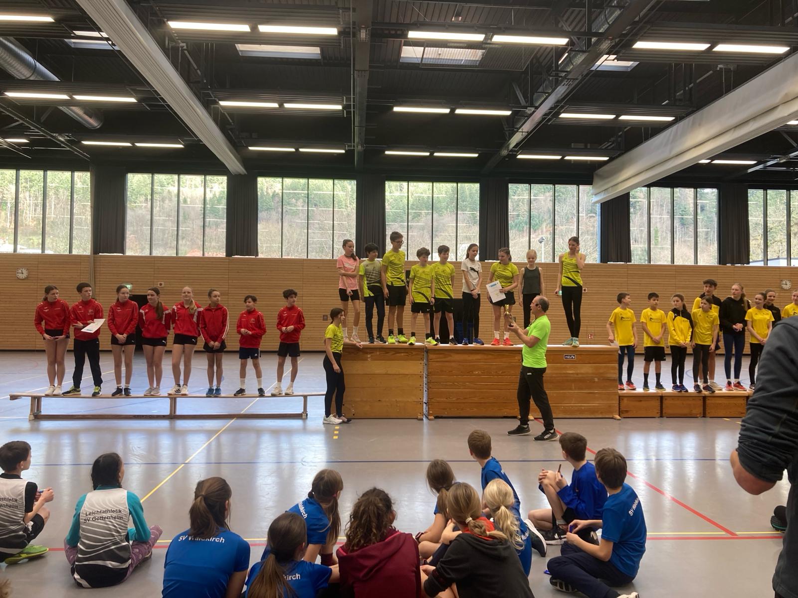 Rund 70 Teilnehmer:innen, Trainer:innen und Eltern feierten die Premiere des U14 Team-Wettkampfes der Kreise Freiburg und Emmendingen in der Freiburger Universitätssporthalle. Hoch motiviert sammelten die Athlet:innen aus sieben Vereinen in den Disziplinen Sprint, Hürdensprint, Weit-Hochsprung, Stoßen und der abschließenden Pendelstaffel Punkte für ihr Team. Am Ende konnte sich knapp der LAC Freiburg vor dem TV Staufen durchsetzen. Dritter wurde die Mannschaft des TV Neustadt. In den Gesichtern der Jugendlichen konnte man die Zufriedenheit ablesen – der im Vordergrund stehende Teamgedanke hat sicherlich dazu beigetragen. Phantastische Einzelleistungen gab es viele, herausragend waren die Leistungen von Marie Spielmann (LAC Freiburg), die als erfolgreichstes Mädchen in drei Disziplinen die beste Einzelleistung erzielen konnte. Bei den Jungen war es Johannes Meier vom TV Staufen, der ebenfalls dreimal für die beste Einzelleistung geehrt wurde.