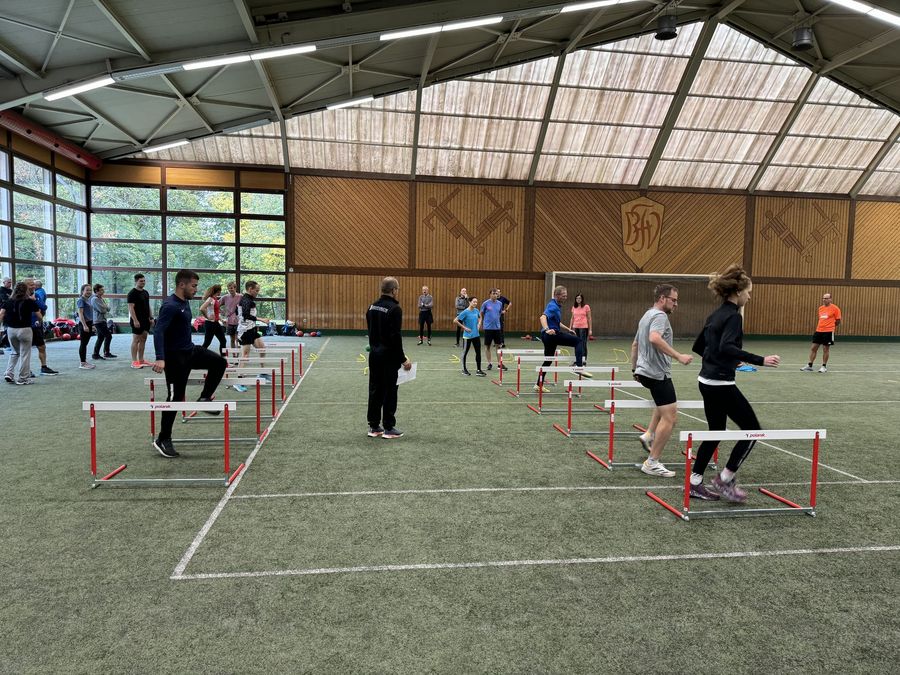 Bevor die vier Gruppen am Mittwoch Nachmittag ihre Ergebnisse im Plenum präsentierten, warteten aber noch andere wichtige Inhalte auf die Übungsleiter aus ganz Baden-Württemberg. Günther Scheefer, Lehrertrainer Lauf am Landesstützpunkt Karlsruhe, zeigte auf wiederholt gekonnter Weise vielfältige Einsatzmöglichkeiten von Hürden auf. Kaum ein anderes Trainingsmittel eignet sich so sehr, um koordinative und athletische Grundfähigkeiten zu entwicklen. Ob nun über Mini-Hürden oder sogar in Kombination mit Medizinbällen: die Einsatz- und Übungsmöglichkeiten sind fast unbegrenzt.