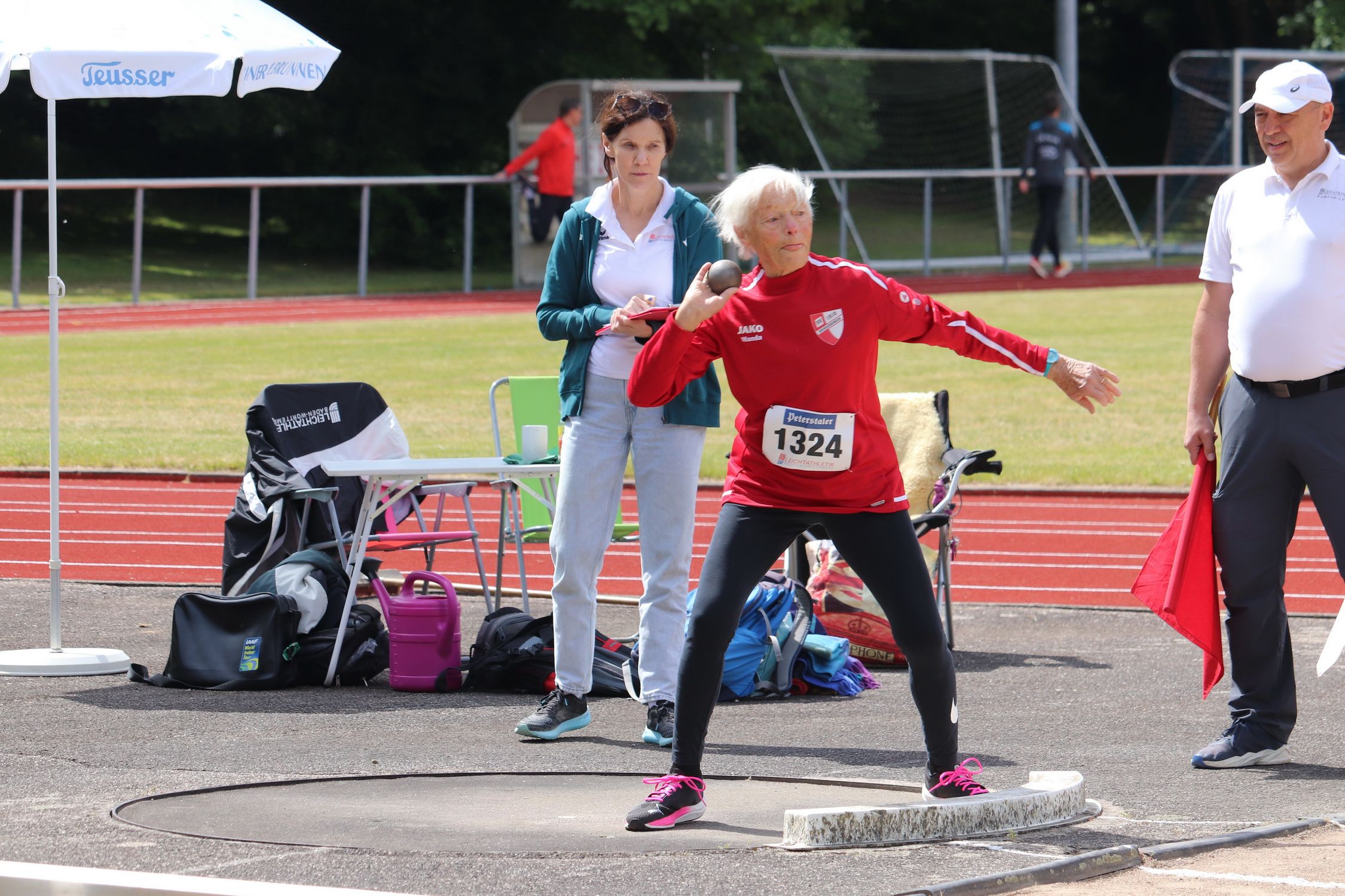 In der W 50 überragte Bettina Schardt von der MTG Mannheim. Die Senioren-Weltmeisterin schleuderte den Diskus auf 41,52 Meter und drehte den 3 Kilo-Hammer auf beeindruckende 45,93 Meter. Gabi Engelhardt vom LC Breisgau kam ihr mit dem Hammer in der W 55 bei 41,02 Meter am nächsten. Spannend war die Entscheidung im Diskuswerfen der M 65. Andreas Fuz vom ESV Weil setzte sich letztendlich im 4. Versuch mit 43,85 Meter gegen Rolf Heinzmann von der LG Walldorf Astoria bei 43,11 Meter und Hans Messner vom LAC Essingen bei 39,24 Meter durch.