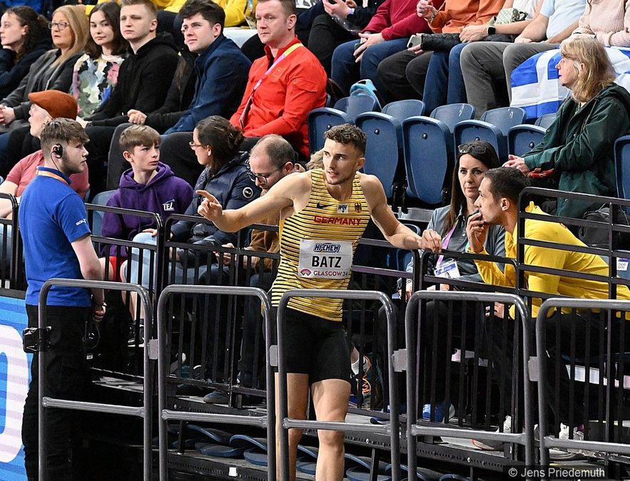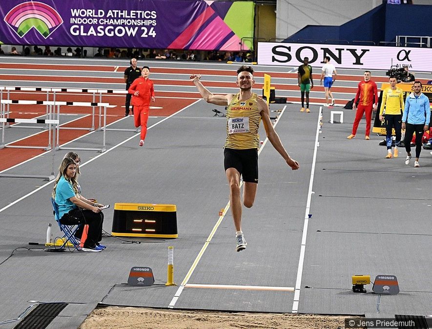 Batz zeigte gleich im ersten Versuch einen starken Sprung auf 7,97 Meter, die bis in Runde drei auch die drittbeste Weite bedeuteten. Darauf folgten von ihm zwei etwas kürzere und darauf zwei ungültige Sprünge. Im letzten Versuch konnte er die zwischenzeitlichen Verbesserungen seiner Konkurrenten noch einmal kontern und sicherte sich mit 8,06 Meter am Ende Platz 4, mit dem er sich dem Deutschen Leichtathletik-Verband (DLV) gegenüber zufrieden äußerte: