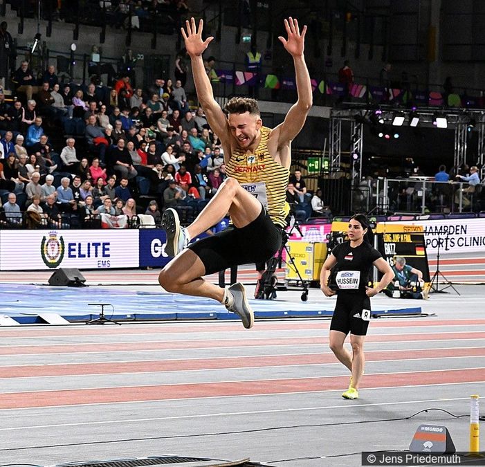 „Ich glaube, meine erste Hallen-WM ist geglückt. Der vierte Platz ist super, darüber brauchen wir nicht zu reden. Die 7,97 Meter im Ersten haben mir einen riesigen Boost gegeben. Danach hatte ich ein bisschen einen Durchhänger. Ich bin vor allem relativ stolz, dass ich den Letzten noch mal so hinbekommen habe. Vom Kopf her. Ich war eigentlich nie jemand, der da noch mal kontern kann. Der vierte und fünfte waren unnötig, die muss ich nicht ungültig machen. Das ist noch das typische alte Muster. Aber das können wir auf jeden Fall Richtung Sommer angehen, dass das noch mal besser wird. Wir haben im Winter sehr viel gearbeitet und einfach da weiter gemacht, wo wir im letzten Jahr aufgehört haben. Aber es gibt noch viel zu tun! Im Training bin ich eigentlich noch besser als im Wettkampf, das ist im Moment für mich das größte Thema, die größte Aufgabe für den Sommer. Die Silbermedaille von Yemi, Christina gestern mit dem vierten Platz, auch wenn es natürlich im ersten Moment etwas undankbar ist, jetzt mein vierter Platz: Das ist bisher eine gute Teamleistung!“